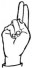 На ћирилици написано КОСТАДИН ВАСИЉКОВИЋ састоји се из 18 слова [?]. Исписано ћириличном једноручном азбуком за глувонеме: